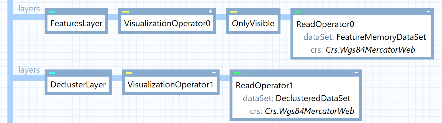 These attributes are necessary to hide the cluster while we display the spread. Declustered features are visualized in another layer:
