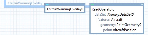 The example above uses a ReadOperator to read the aircraft feature from a MemoryDataSet, which is also used for visualization of the aircraft.
