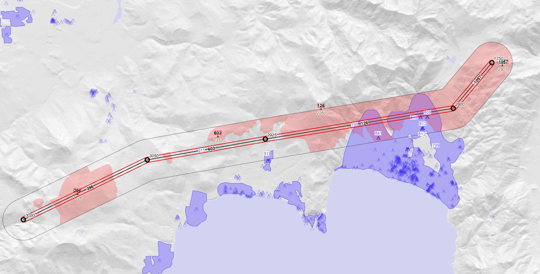 Carmenta’s UAV routing utilizes terrain features such as ridges and valleys, as well as changes in elevation, to enable UAVs to move undetected.