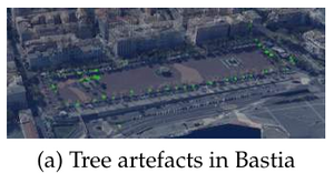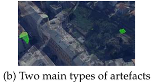 Density holds potential for vegetation detection in meshes with varying resolutions. Due to time constraints, it was not however possible to effectively include it in the final proposal. Vegetation processing for artefact removal is usually rather specific, therefore a better performing vegetation detection in the primary clustering via MRF step is important to efficiently distinguish ground, buildings and trees. In order to improve object detection, using available and accurate elevation data could allow to perform watershed without requiring texture based constraints. Finally, in general, constituting ground-truths for supervised approach or simply performance evaluation could be of great benefit.